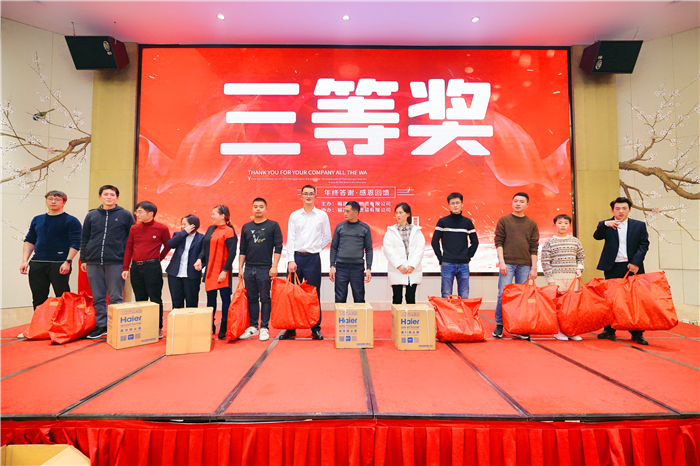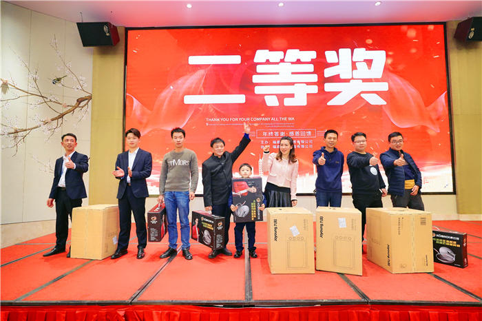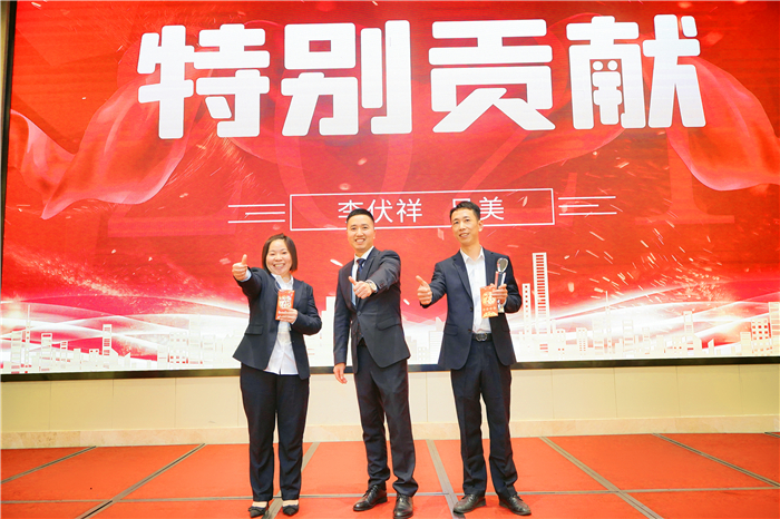 在頒獎典禮上,為陪伴公司共同經歷風雨,努力拼搏的員工頒發了“進步獎”“銷冠獎”“優秀員工”“特別貢獻獎”,并對兩家戰略合作伙伴頒發了“戰略合作獎”。